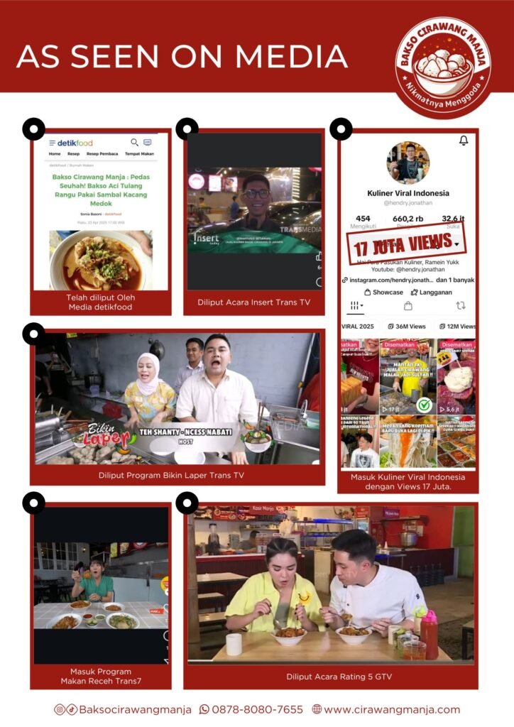 Bakso Cirawang Manja telah menjadi pembicaraan di mana-mana. Viral di TikTok, nstagram. Antusiasme pasar sudah terbentuk, sehingga Anda tidak mulai dari nol membangun awareness. Begitu buka, pelanggan langsung penasaran dan datang mencoba.